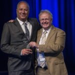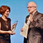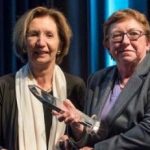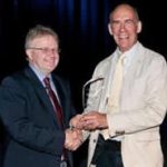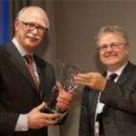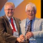 Two stalwarts of the European Working Group for Cystic Fibrosis and later the European Cystic Fibrosis Society receiving the well-deserved ECFS Awards from the President, Stuart Elborn.